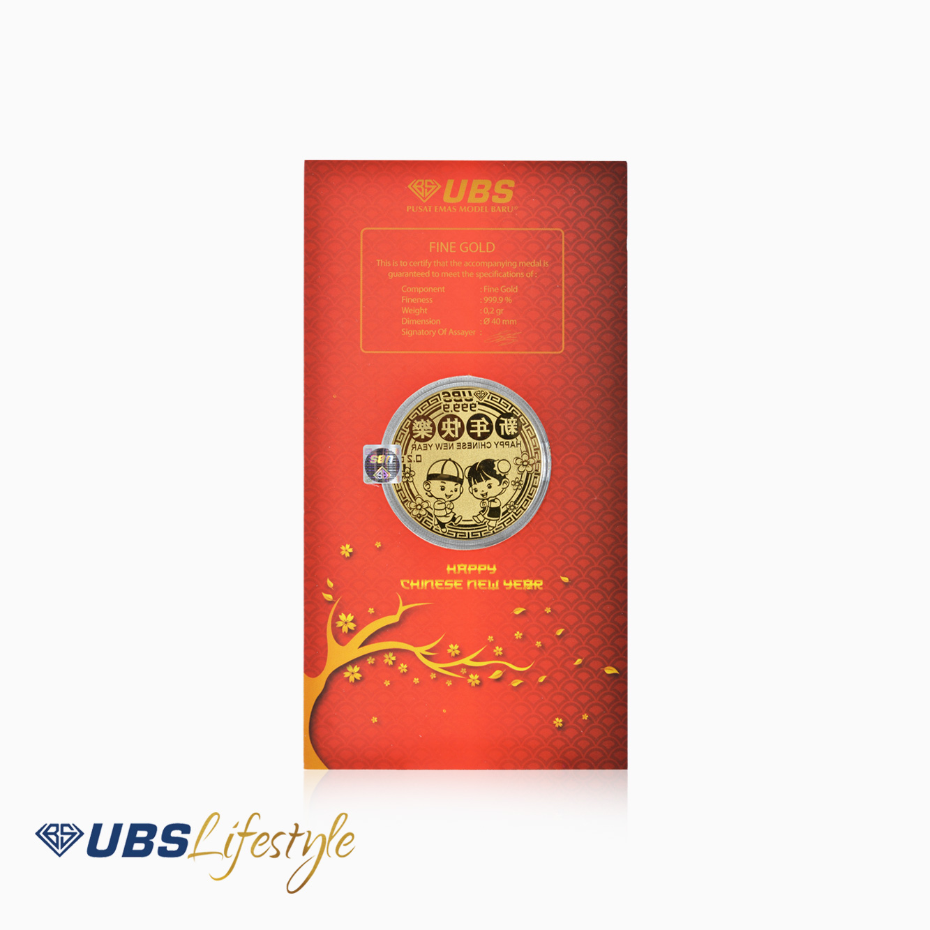 Angpao UBS 999.9 bersertifikat edisi Chinese New Year. Cocok dijadikan sebagai angpao di Hari bahagia sahabat atau saudara Anda.