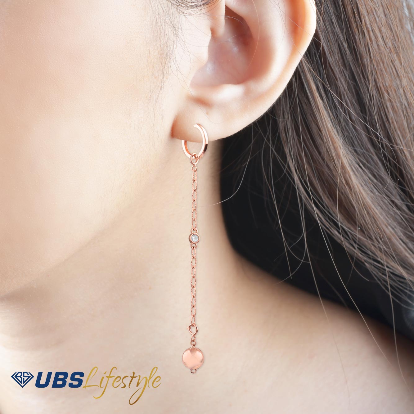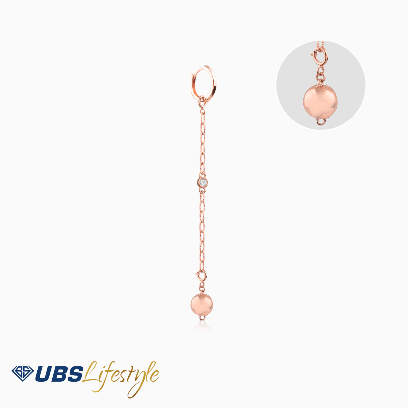 Perhiasan anting emas UBS yang memiliki stamp 750. Cocok untuk menyempurnakan penampilan Sahabat Emas.