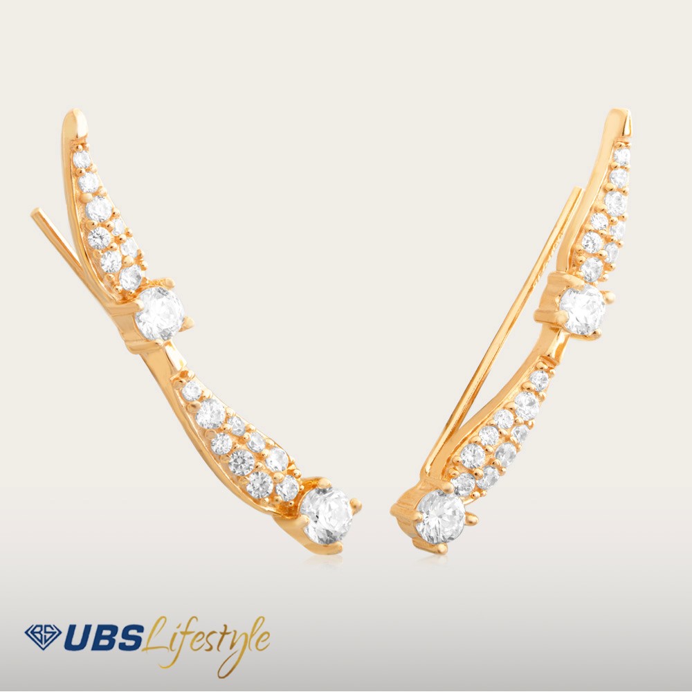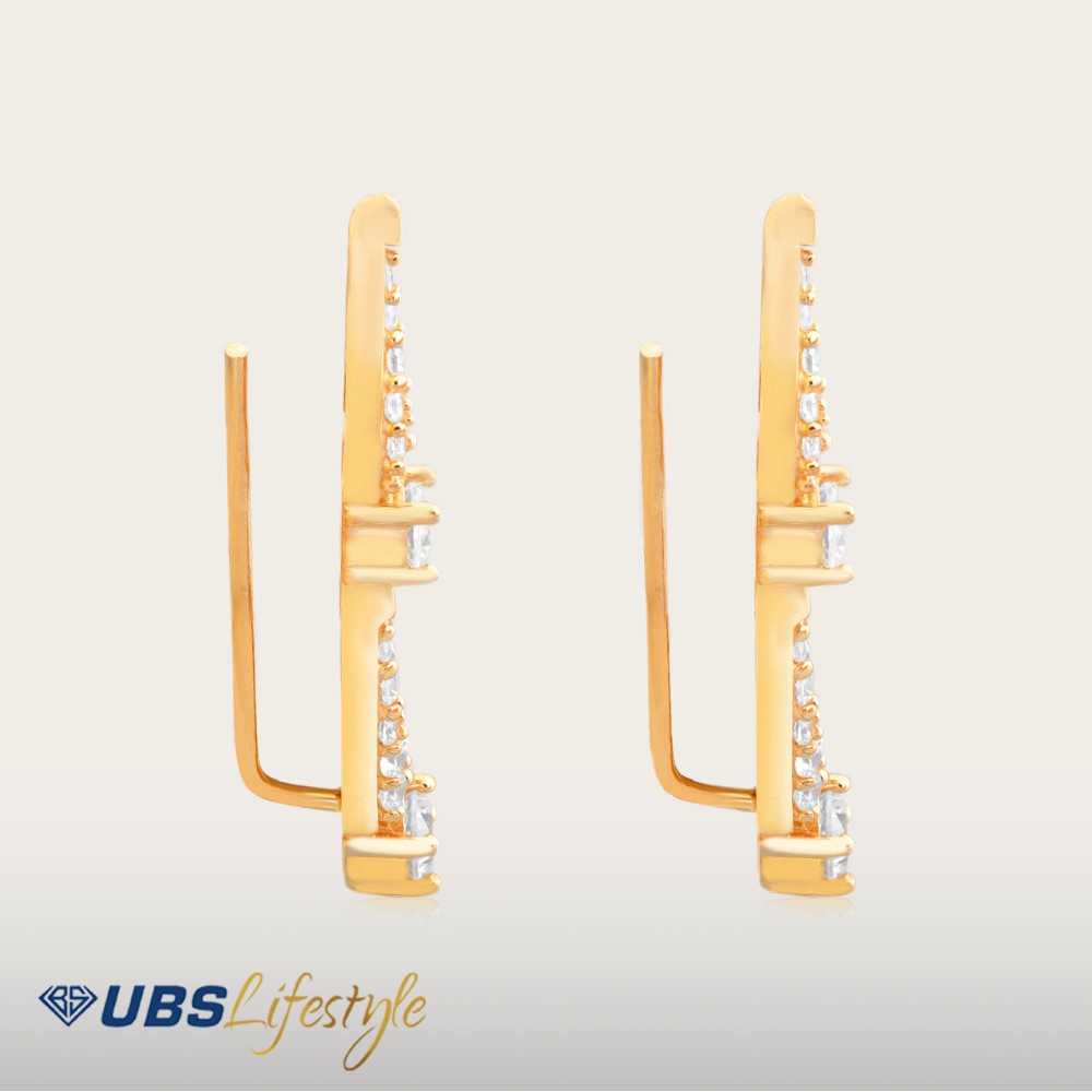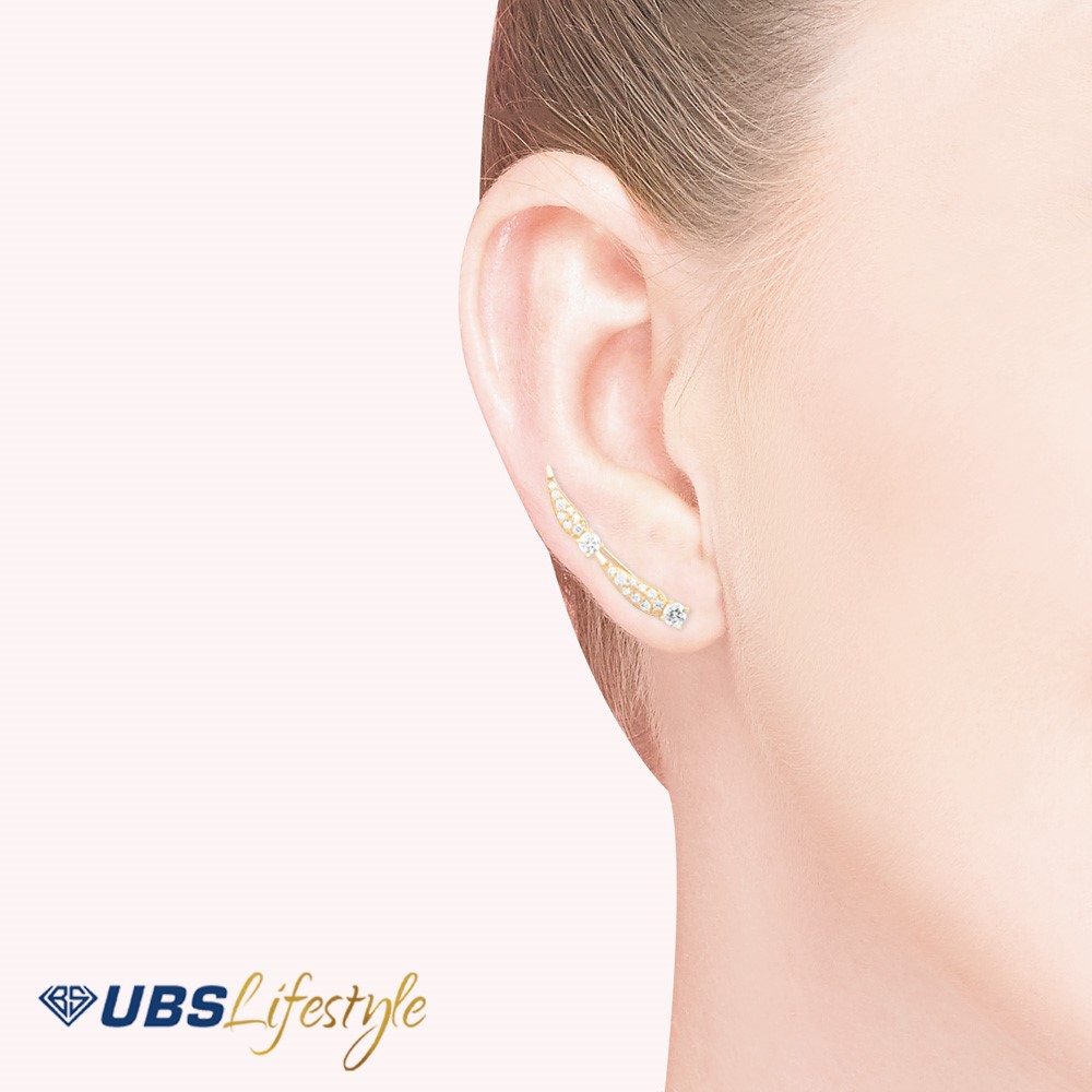 Perhiasan giwang emas UBS yang memiliki stamp 750. Cocok untuk menyempurnakan penampilan Sahabat Emas.