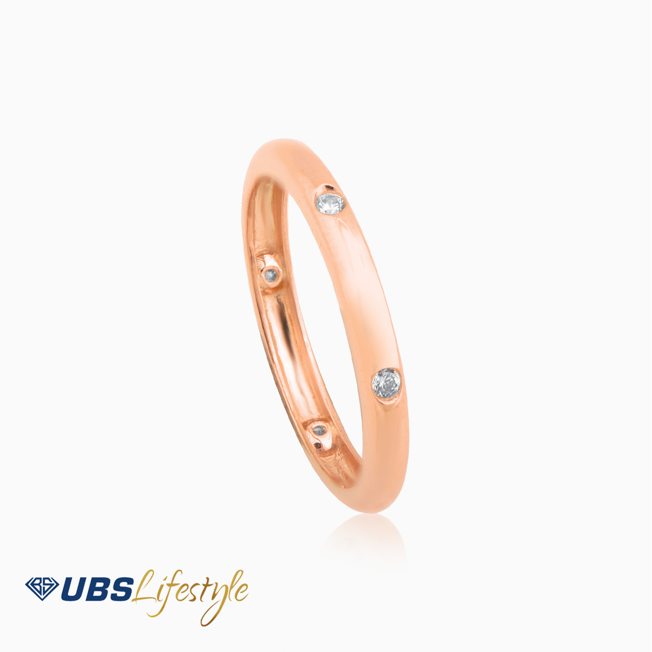 Perhiasan cincin emas UBS yang memiliki stamp 750. Cocok untuk menyempurnakan penampilan Sahabat Emas.