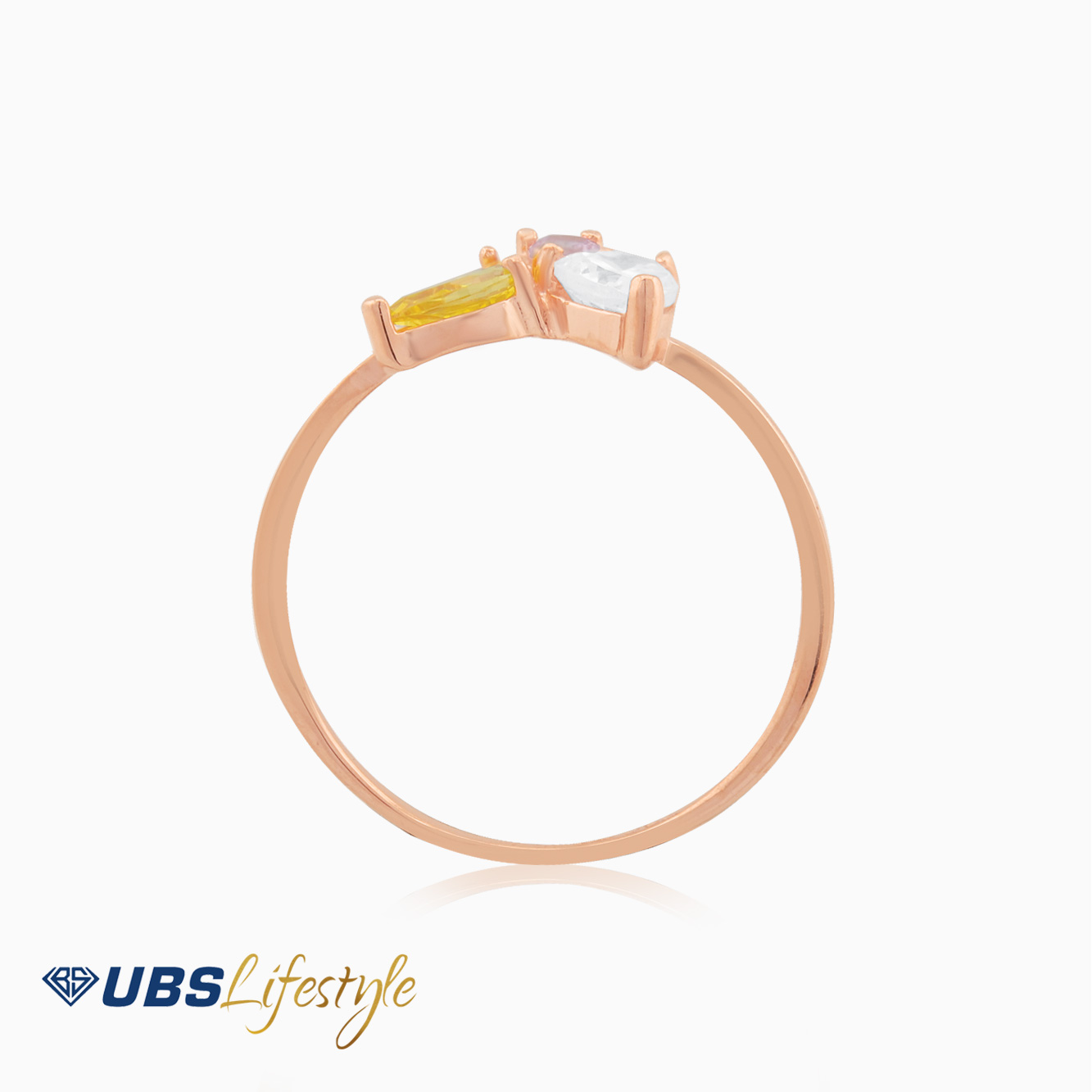 Perhiasan cincin emas UBS yang memiliki stamp 750. Cocok untuk menyempurnakan penampilan Sahabat Emas.