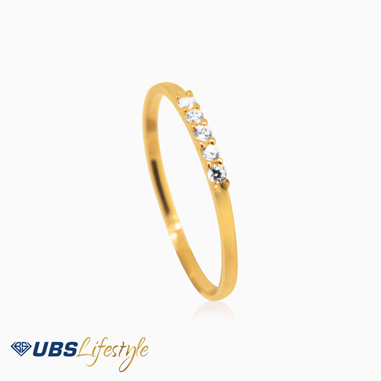 Perhiasan cincin emas UBS yang memiliki stamp 750. Cocok untuk menyempurnakan penampilan Sahabat Emas.