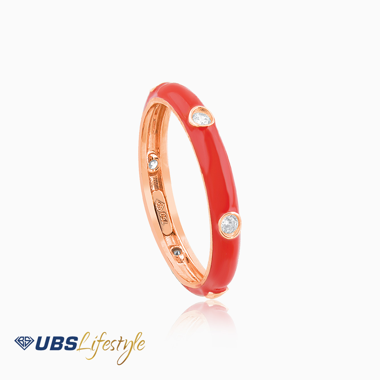 Perhiasan cincin emas UBS yang memiliki stamp 750. Cocok untuk menyempurnakan penampilan Sahabat Emas.