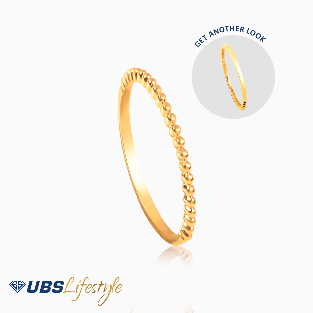 Perhiasan cincin emas UBS yang memiliki stamp 750. Cocok untuk menyempurnakan penampilan Sahabat Emas.