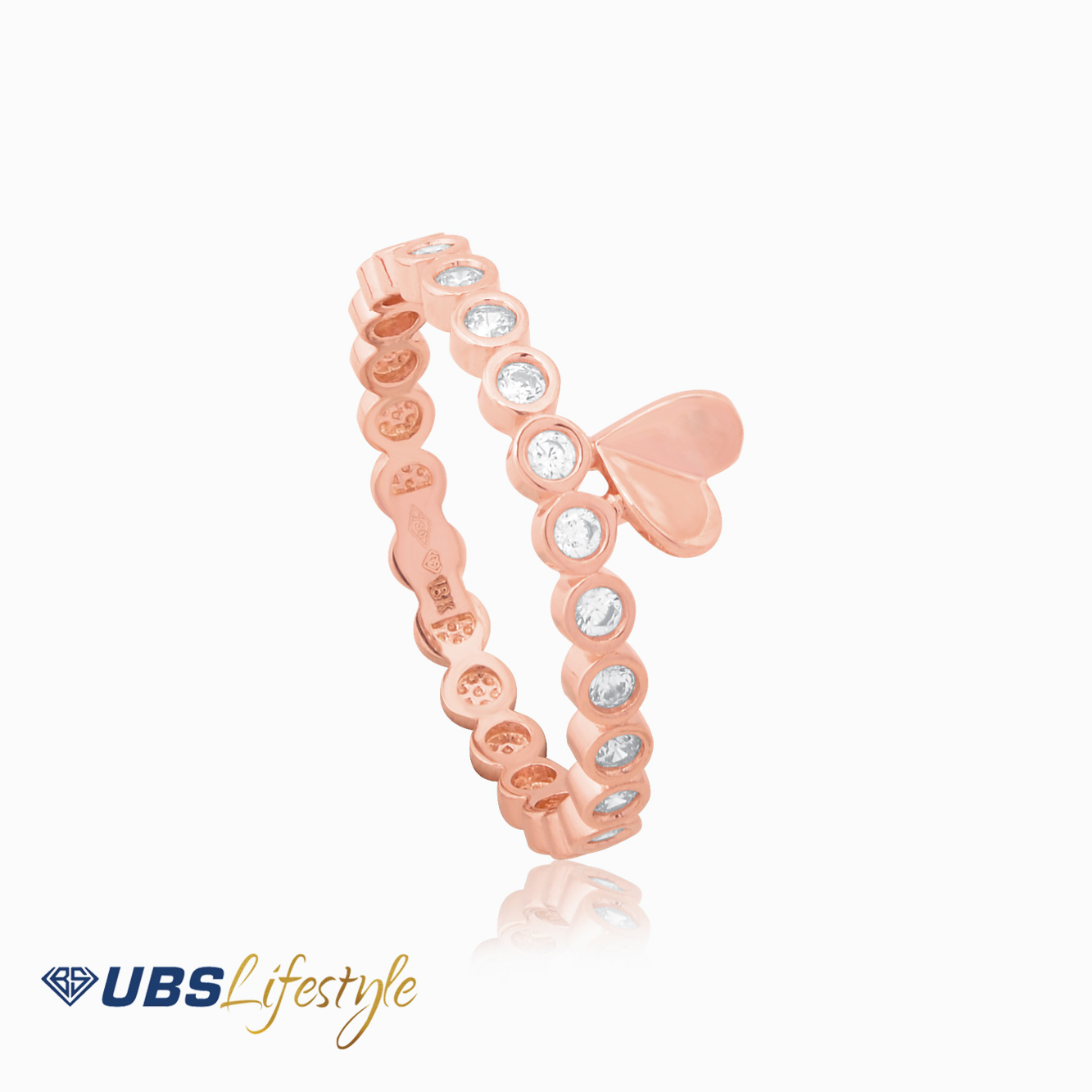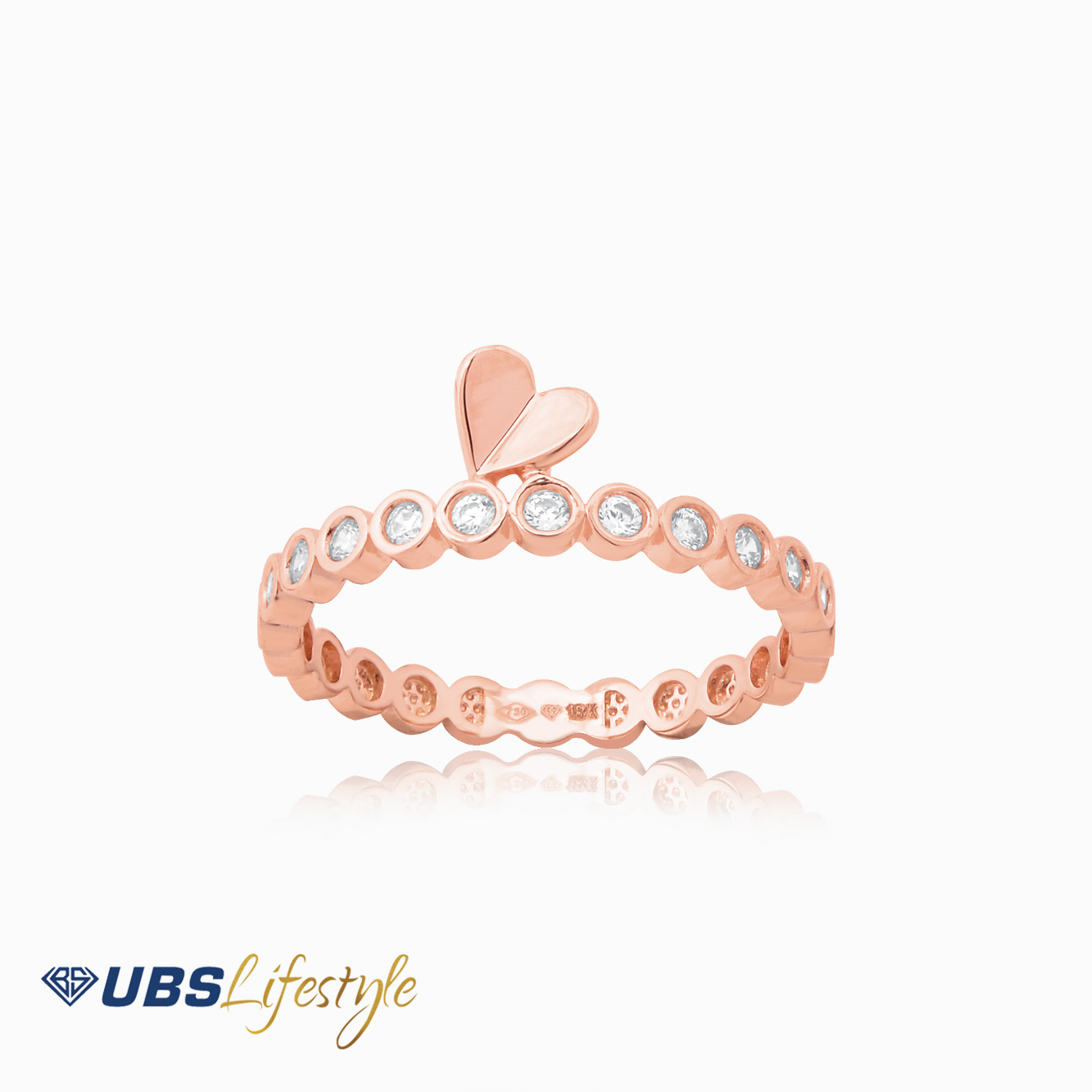 Perhiasan cincin emas UBS dengan stamp 750. Cocok untuk menyempurnakan penampilan Sahabat Emas.