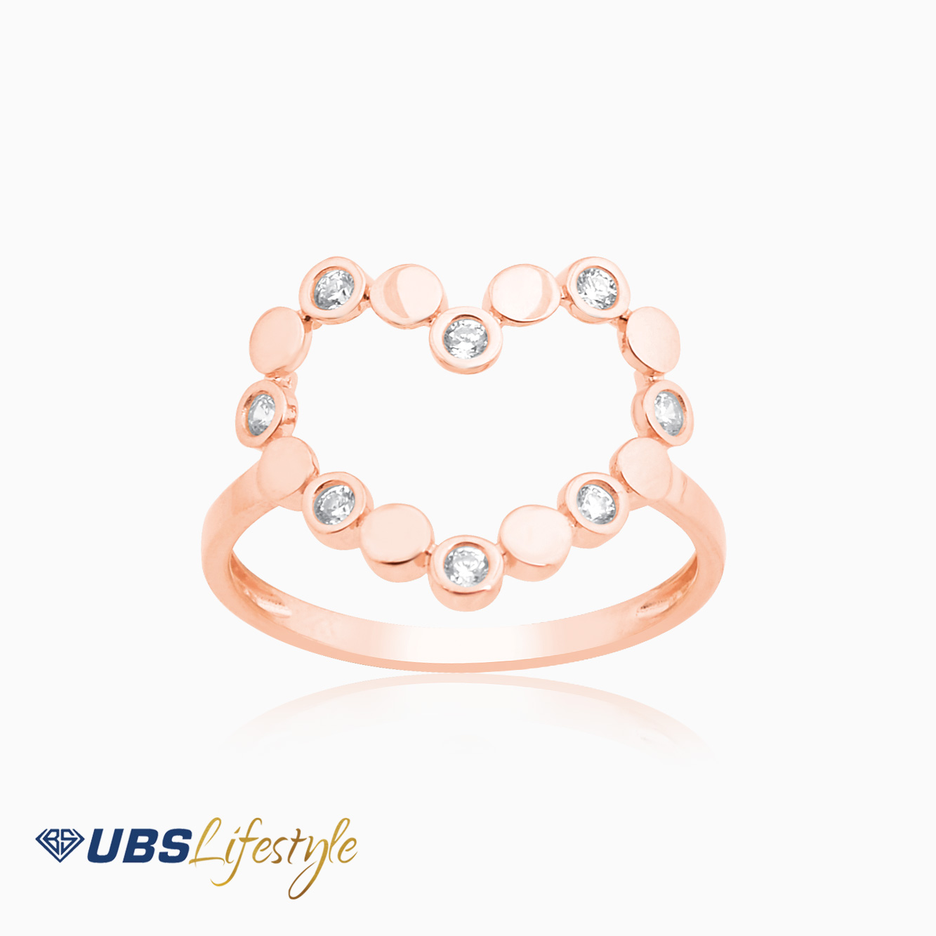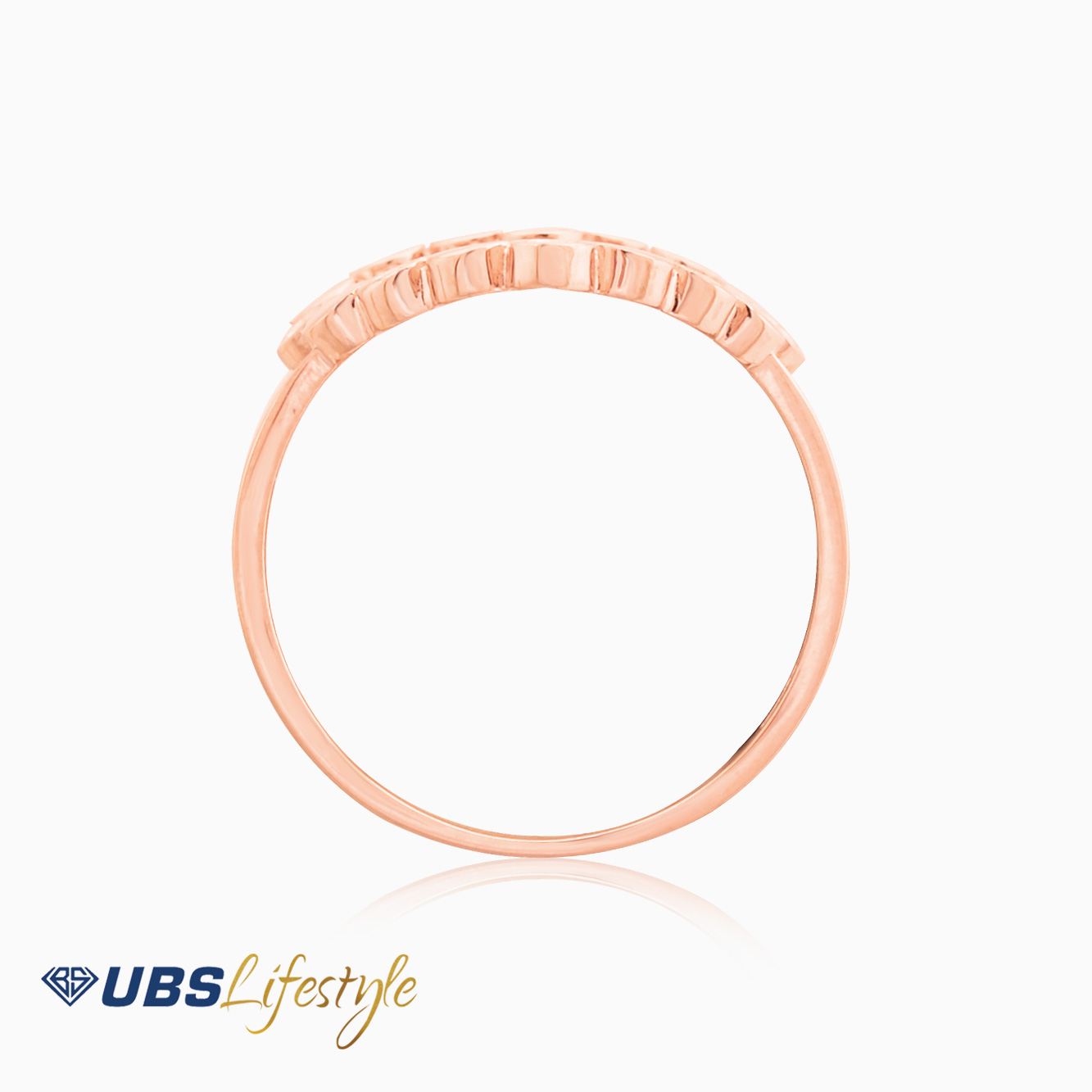Perhiasan cincin emas UBS dengan stamp 750. Cocok untuk menyempurnakan penampilan Sahabat Emas.