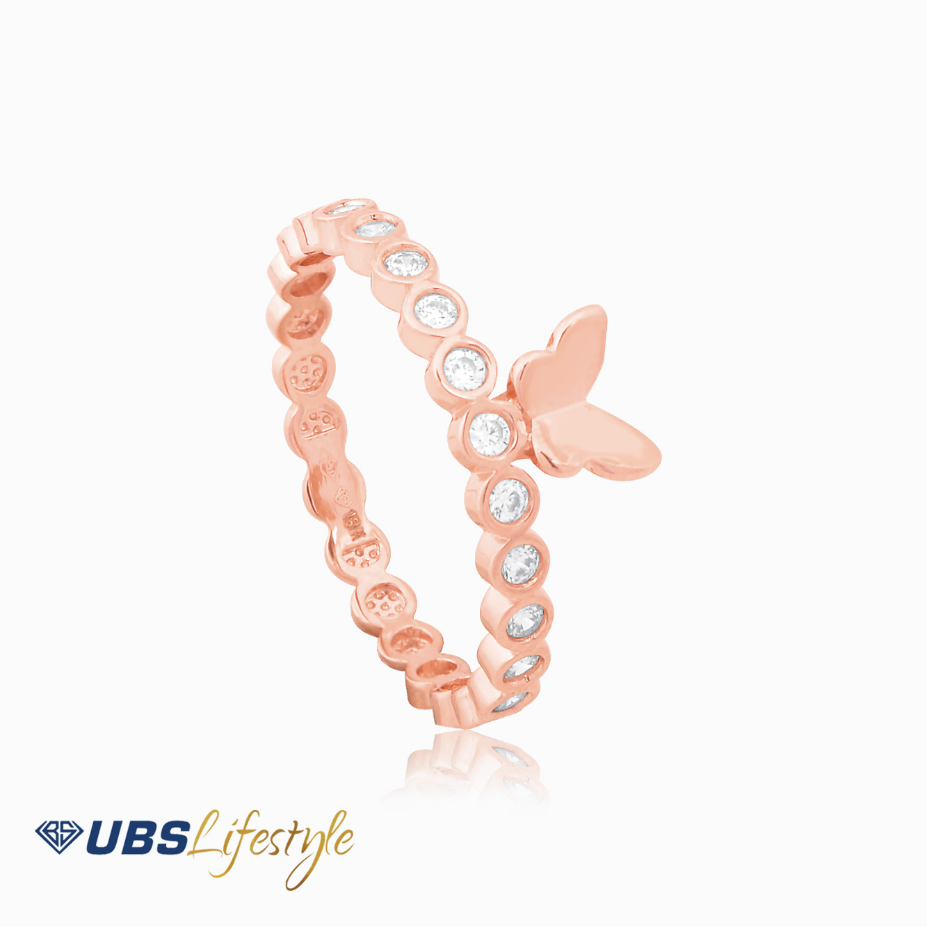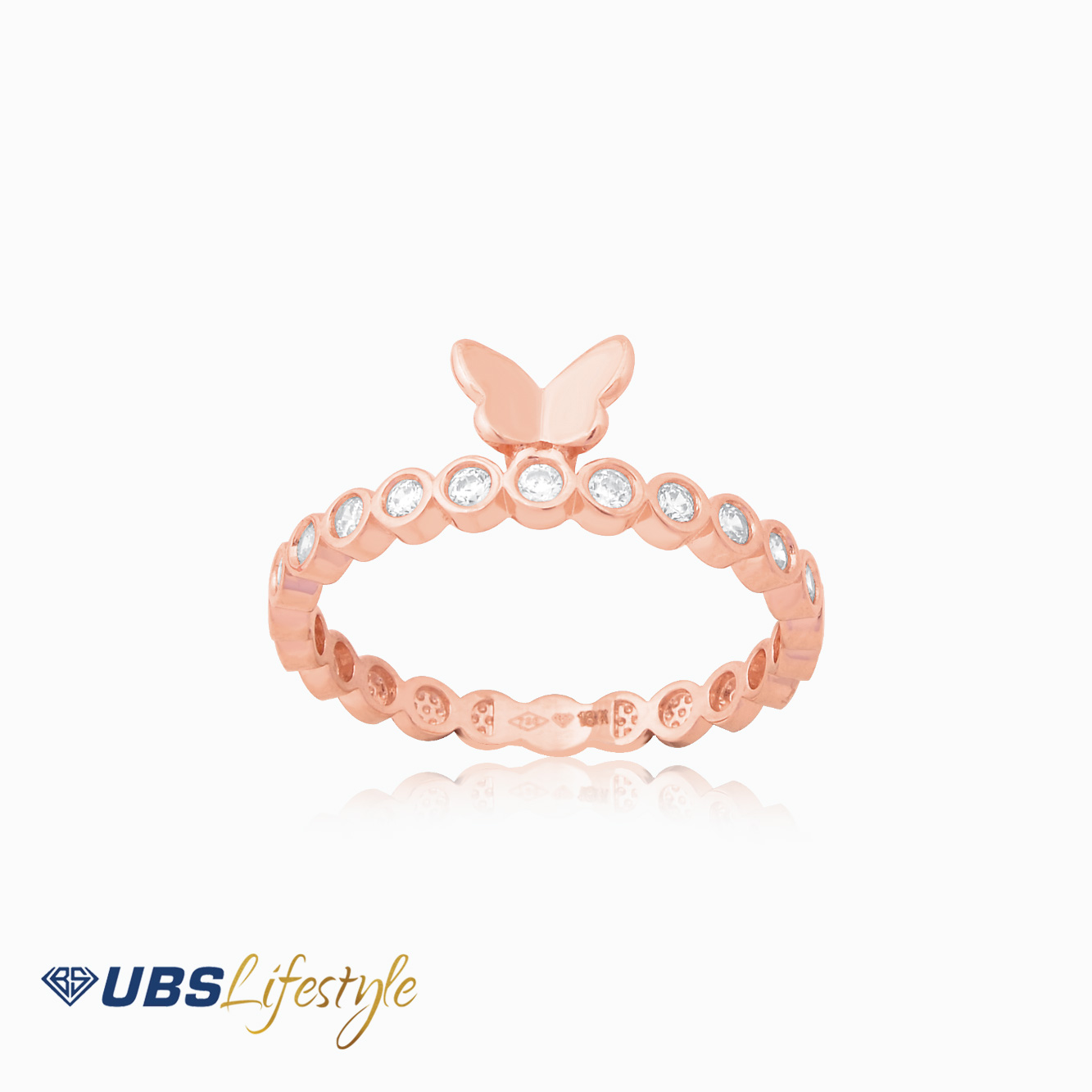 Perhiasan cincin emas UBS dengan stamp 750. Cocok untuk menyempurnakan penampilan Sahabat Emas.
