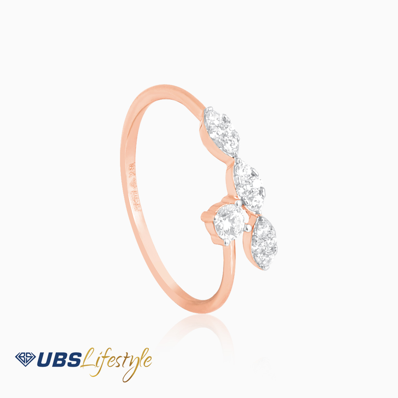 Perhiasan cincin emas UBS dengan stamp 750. Cocok untuk menyempurnakan penampilan Sahabat Emas.
