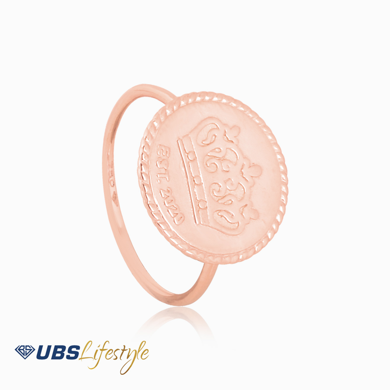 Perhiasan cincin emas UBS dengan stamp 750. Cocok untuk menyempurnakan penampilan Sahabat Emas. Dengan desain vintage membuat penampilan terlihat classy.