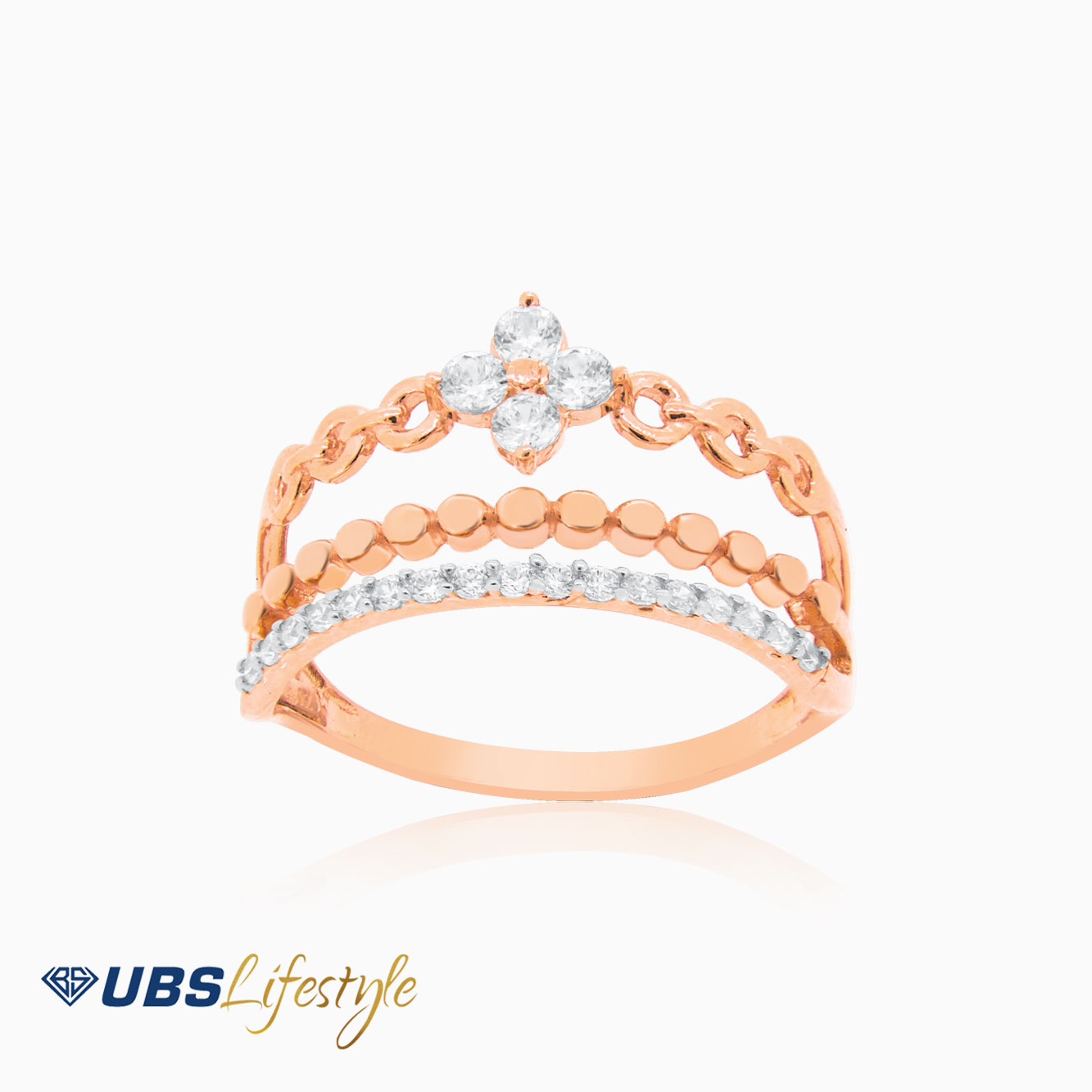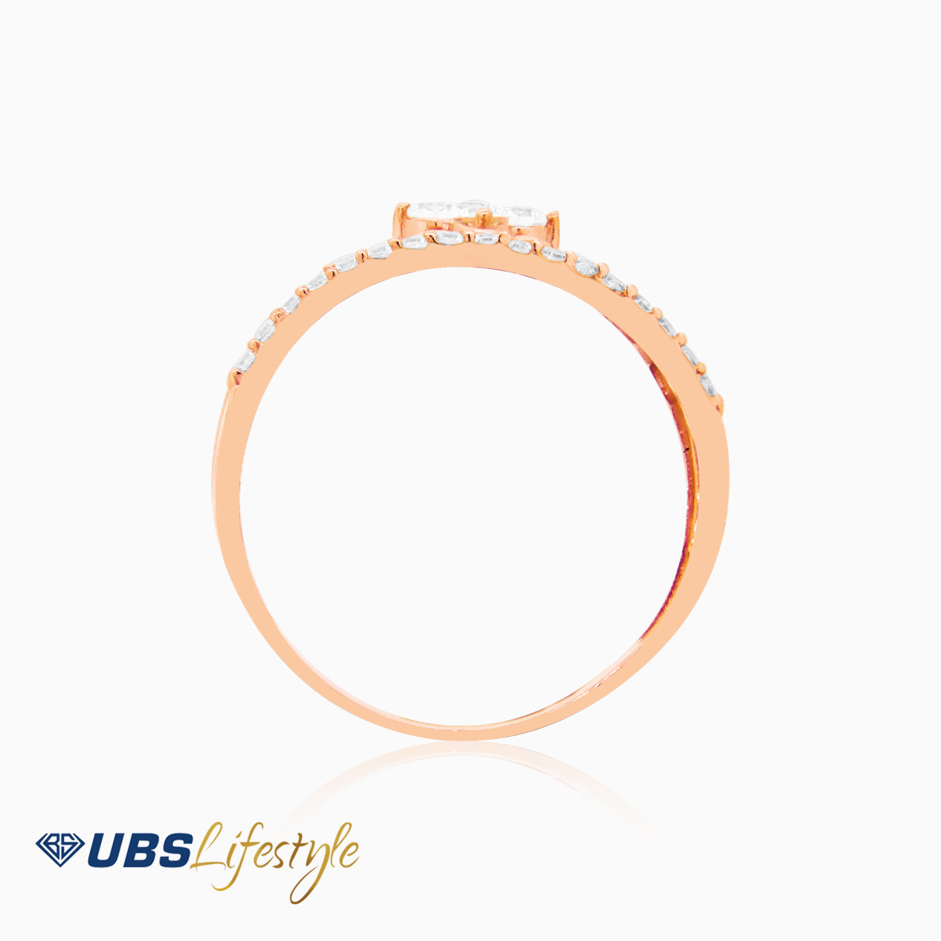 Perhiasan cincin emas UBS yang memiliki stamp 750. Cocok untuk menyempurnakan penampilan Sahabat Emas.