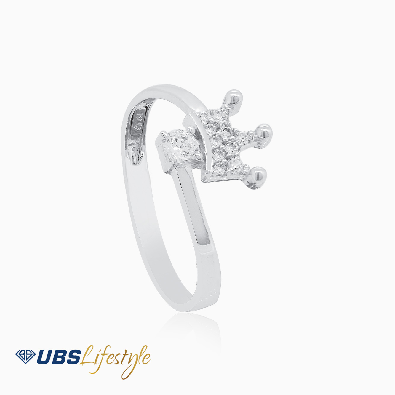 Perhiasan cincin emas UBS yang memiliki stamp 750. Cocok untuk menyempurnakan penampilan Sahabat Emas.