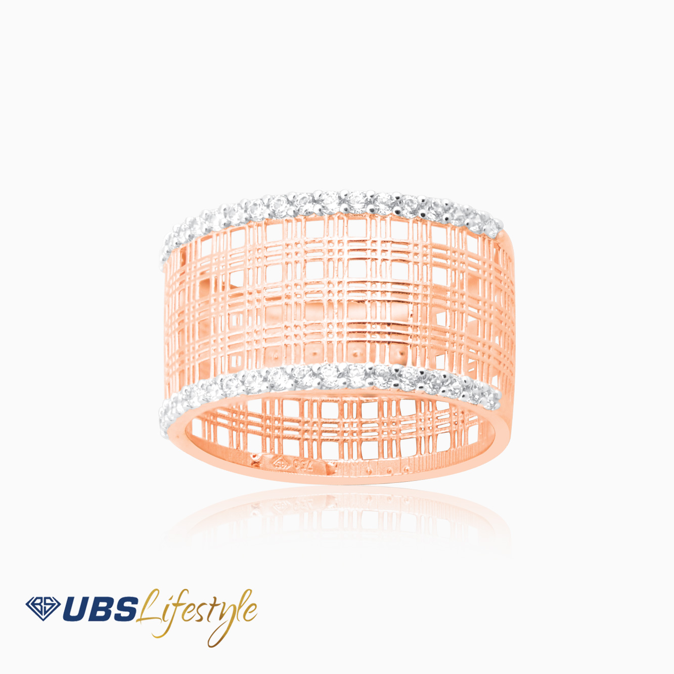Perhiasan cincin emas UBS yang memiliki stamp 750. Cocok untuk menyempurnakan penampilan Sahabat Emas.