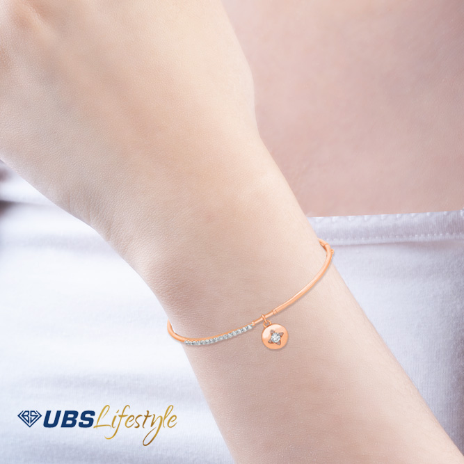 Perhiasan gelang emas UBS yang memiliki stamp 750. Cocok untuk menyempurnakan penampilan Sahabat Emas.