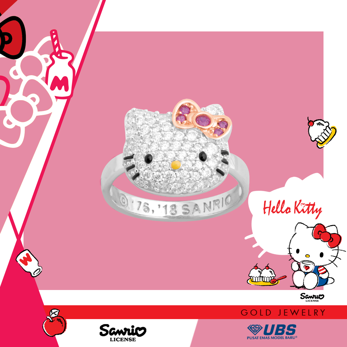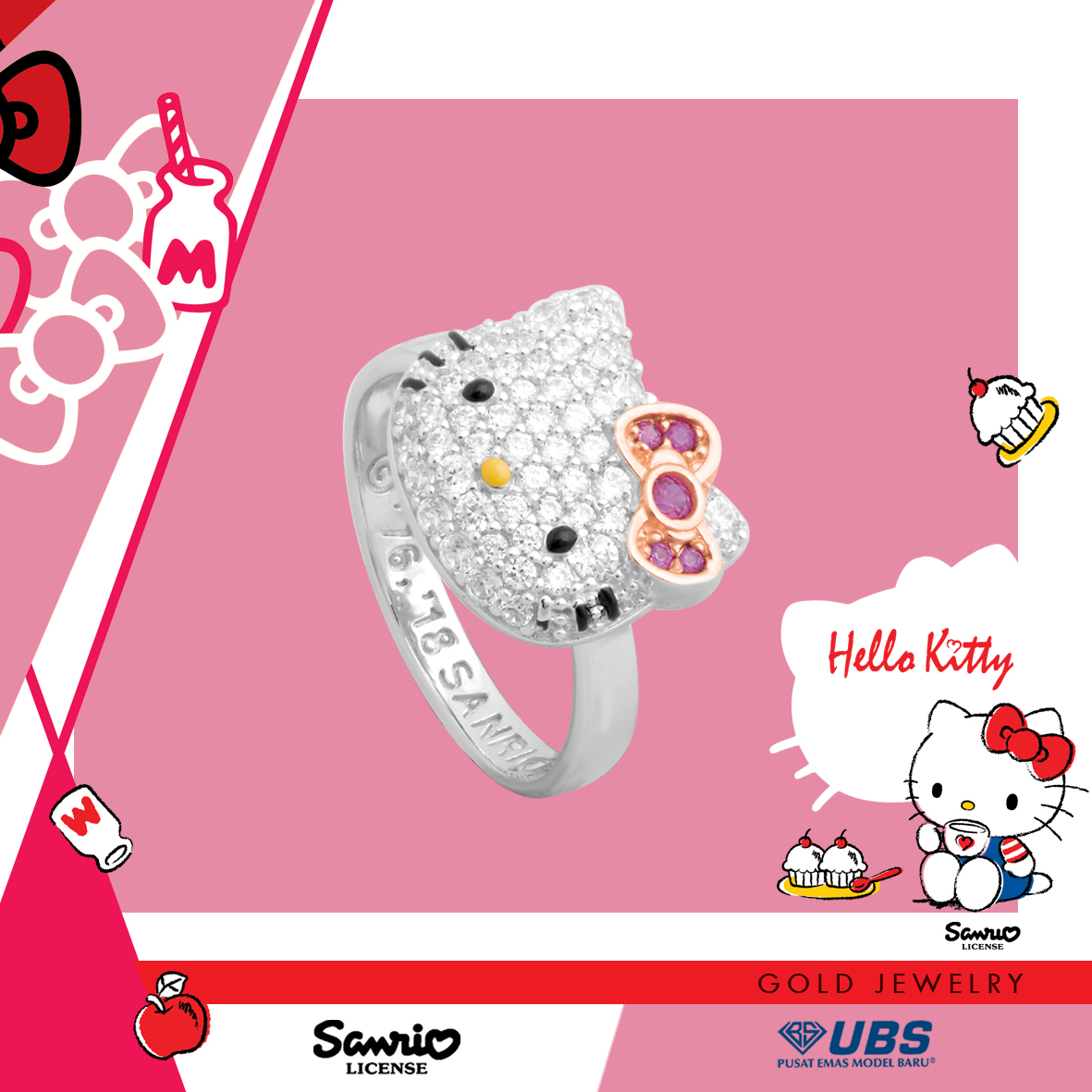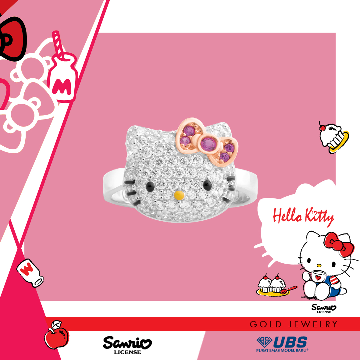 Sanrio & UBS Gold presents Hello Kitty & friends gold jewelry collection. Life is sweet & precious like gold... UBS Gold, PT. Untung Bersama Sejahtera is the official license holder of Sanrio Gold Jewelry in Indonesia.. Sanrio & UBS Gold Jewelry menghadirkan koleksi perhiasan emas Hello Kitty & Friends. Sanrio berasal dari Jepang yang memiliki karakter Hello Kitty & Friends yang telah dikenal mendunia.. Semanis hidup & berharga seperti emas.
