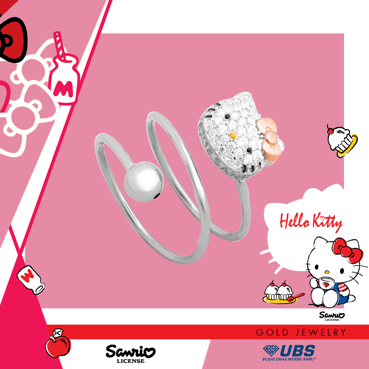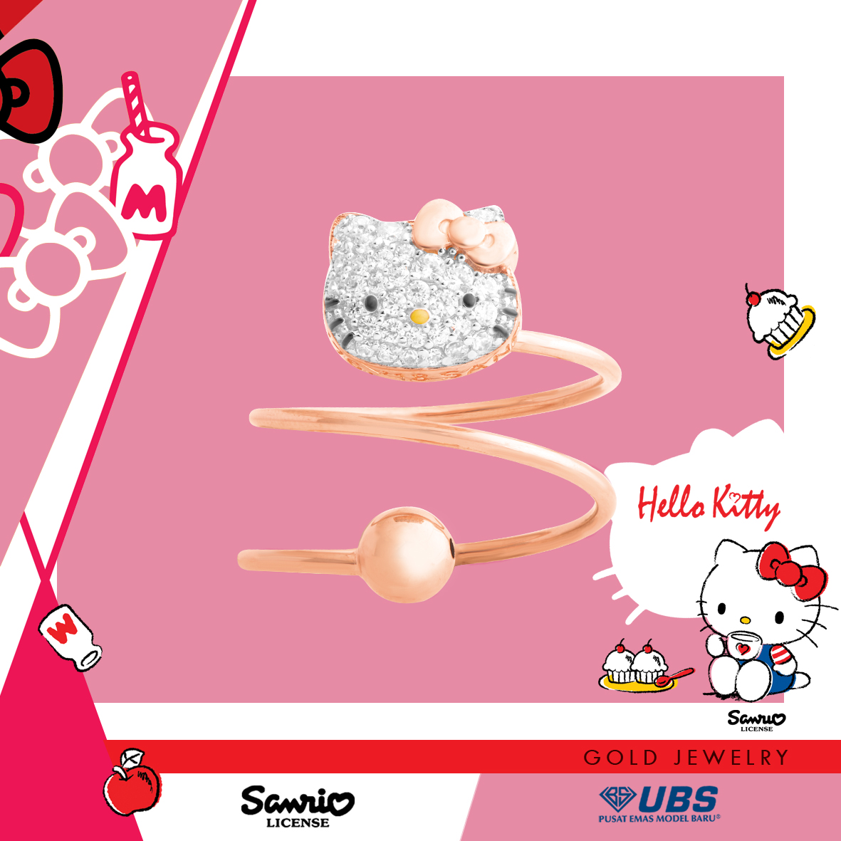 Sanrio & UBS Gold presents Hello Kitty & friends gold jewelry collection. Life is sweet & precious like gold... UBS Gold, PT. Untung Bersama Sejahtera is the official license holder of Sanrio Gold Jewelry in Indonesia.. Sanrio & UBS Gold Jewelry menghadirkan koleksi perhiasan emas Hello Kitty & Friends. Sanrio berasal dari Jepang yang memiliki karakter Hello Kitty & Friends yang telah dikenal mendunia.. Semanis hidup & berharga seperti emas.