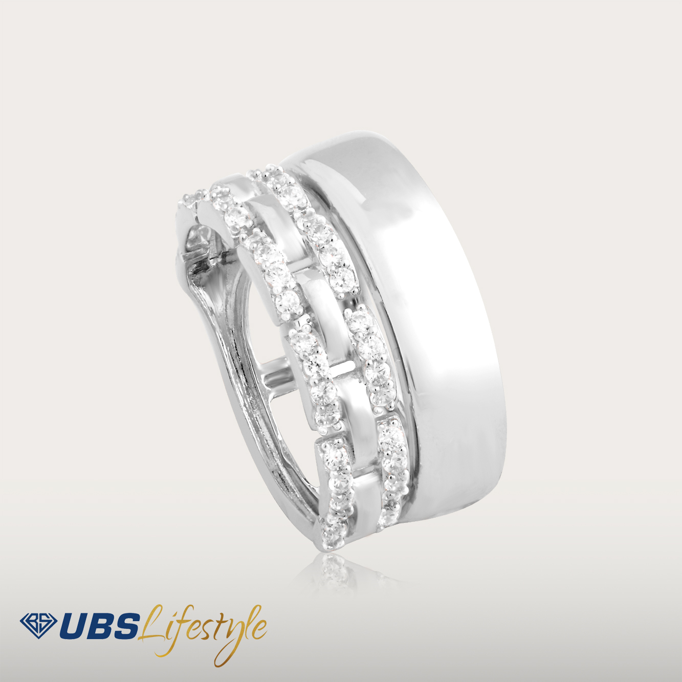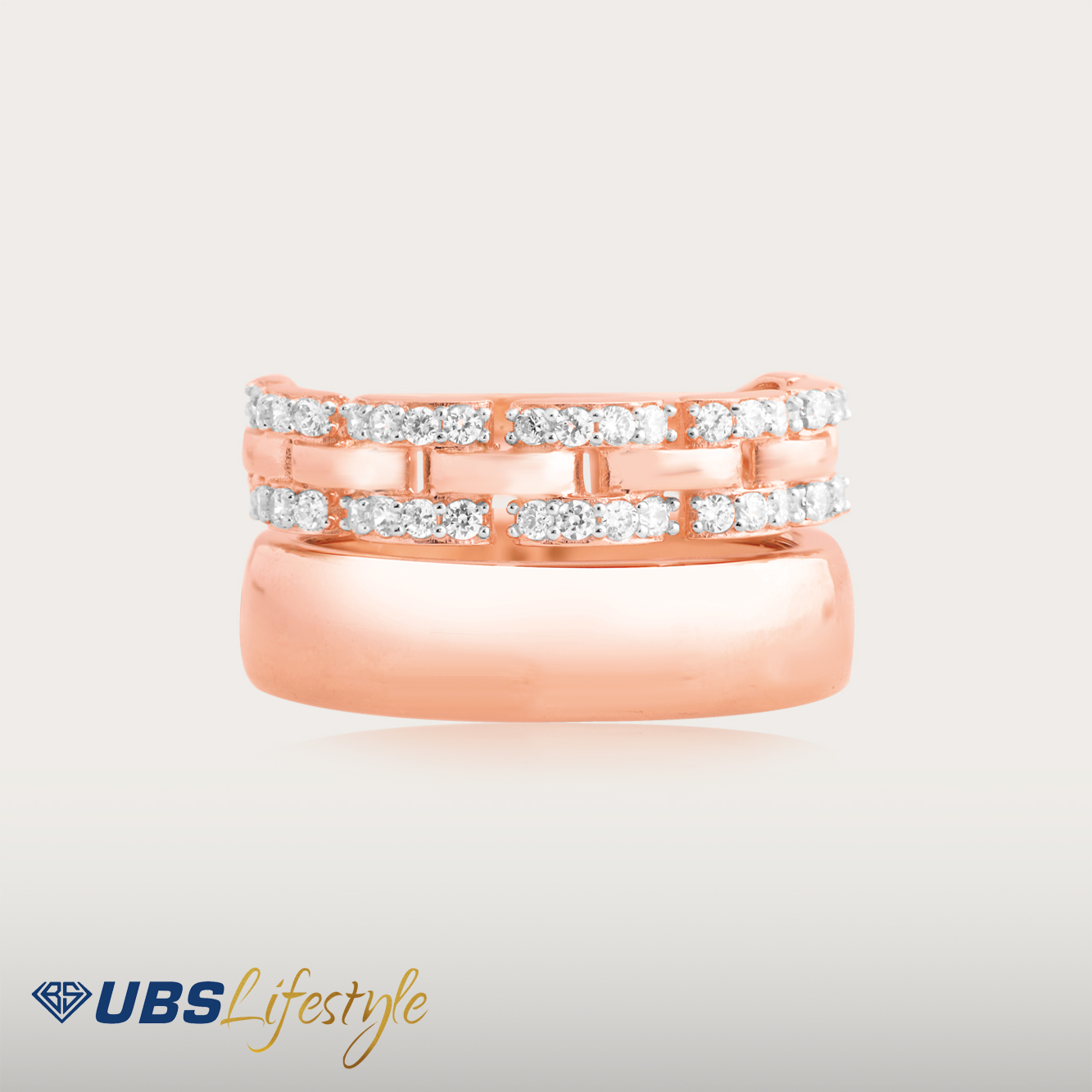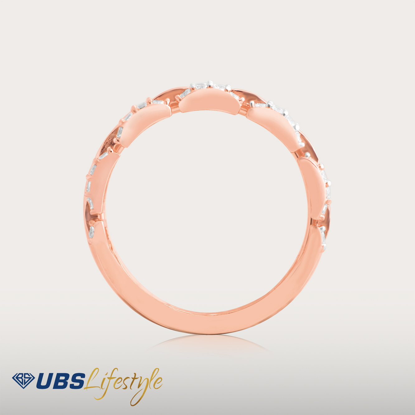 Perhiasan cincin emas UBS yang memiliki stamp 750. Cocok untuk menyempurnakan penampilan Sahabat Emas.