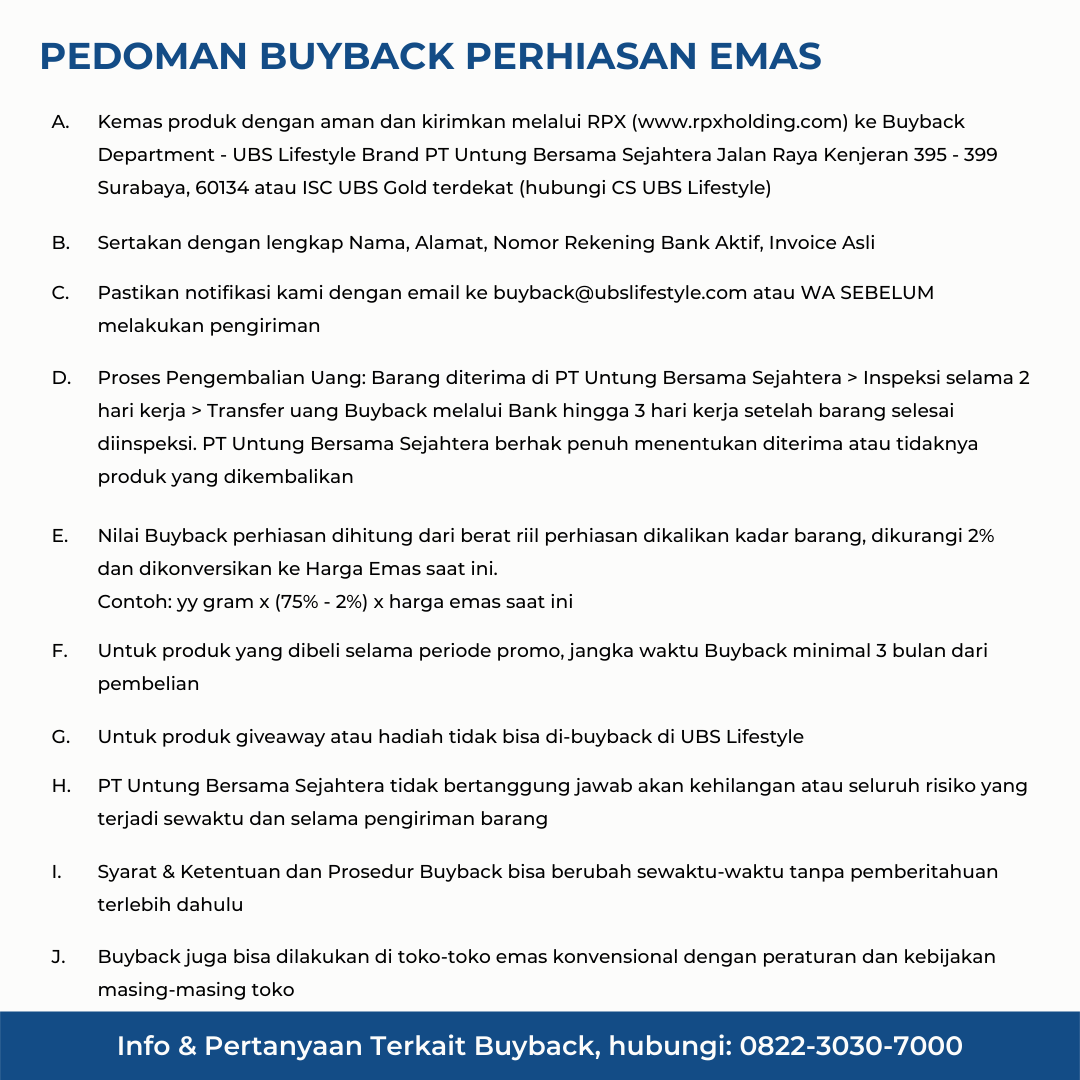 Perhiasan liontin emas UBS yang memiliki stamp 750. Cocok untuk menyempurnakan penampilan Sahabat Emas.