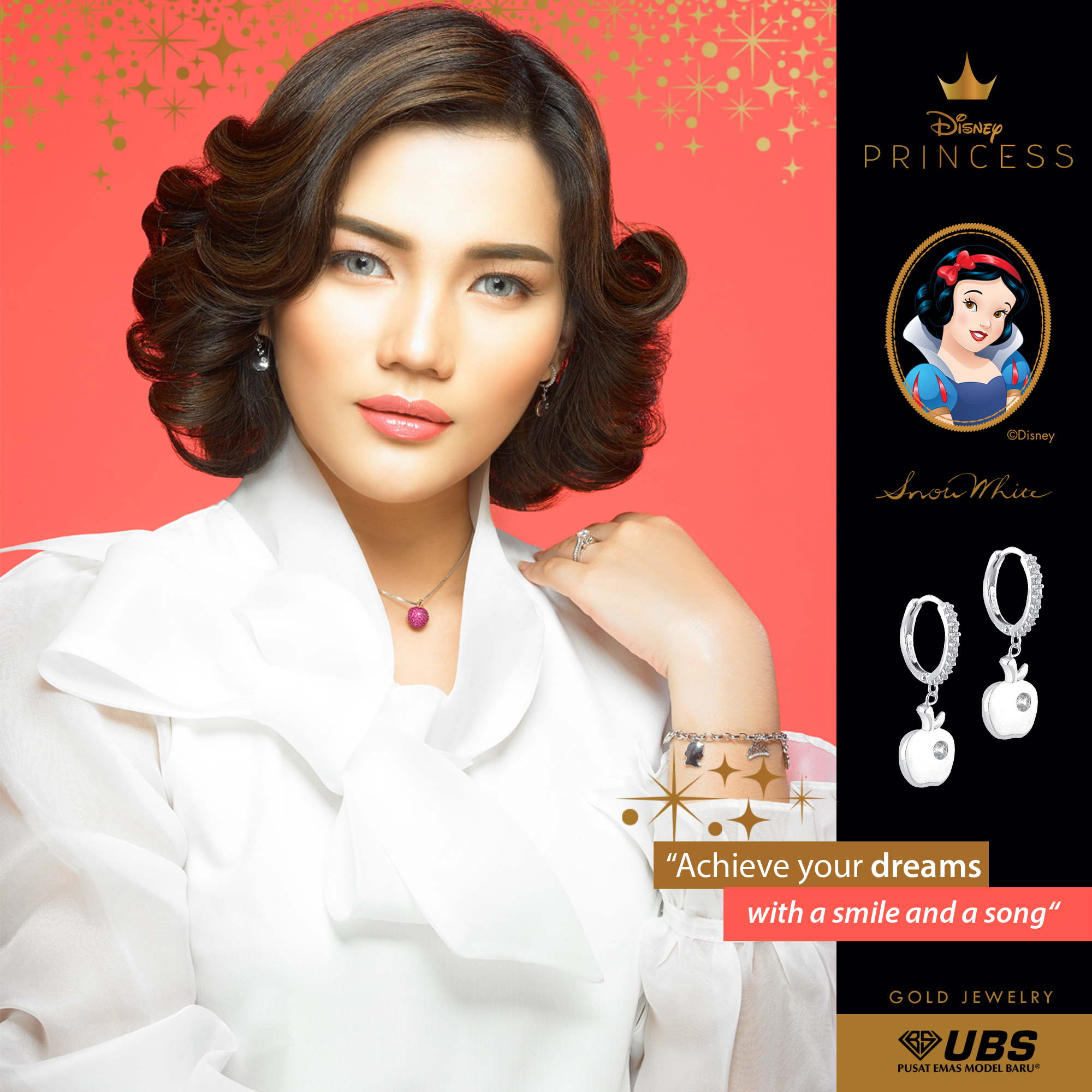Disney & UBS Gold presents Disney Princess gold jewelry collection. It's fun & iconic for your fashion style!. UBS Gold, PT. Untung Bersama Sejahtera is the official license holder of Disney Gold Jewelry in Indonesia.. Disney & Gold Jewelry menghadirkan koleksi perhiasan emas Mickey Mouse & friends. Ceria dan ikonik untuk gaya fashion Sahabat!