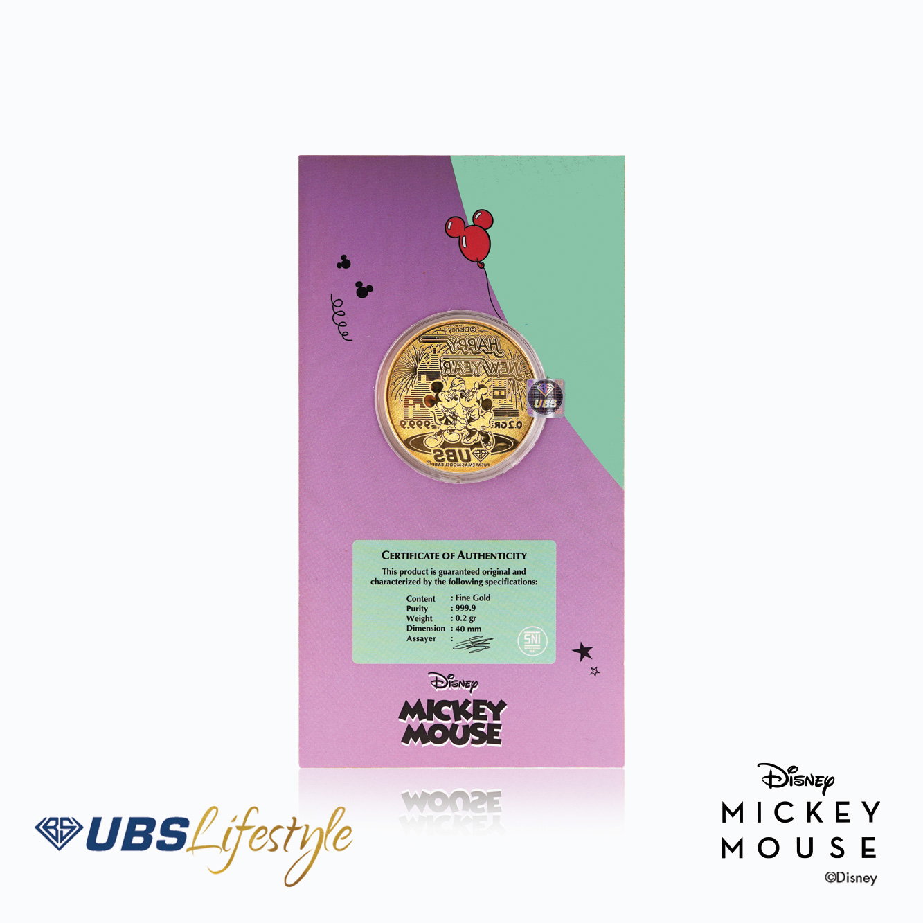 Logam mulia UBS 999.9 bersertifikat edisi Disney Mickey Mouse. Cocok dijadikan sebagai angpao di Hari bahagia sahabat atau saudara Anda.