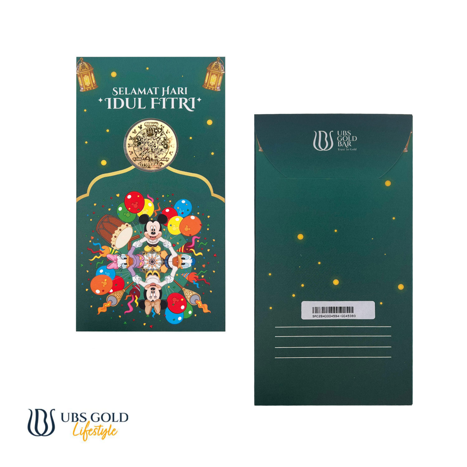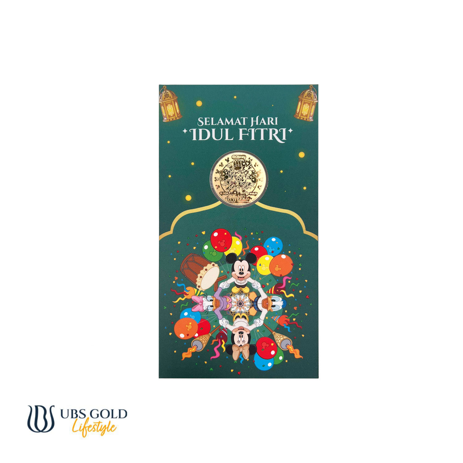 H1111 UBS Gold Angpao Disney Mickey Minnie Mouse Idul Fitri 0.1 Gr