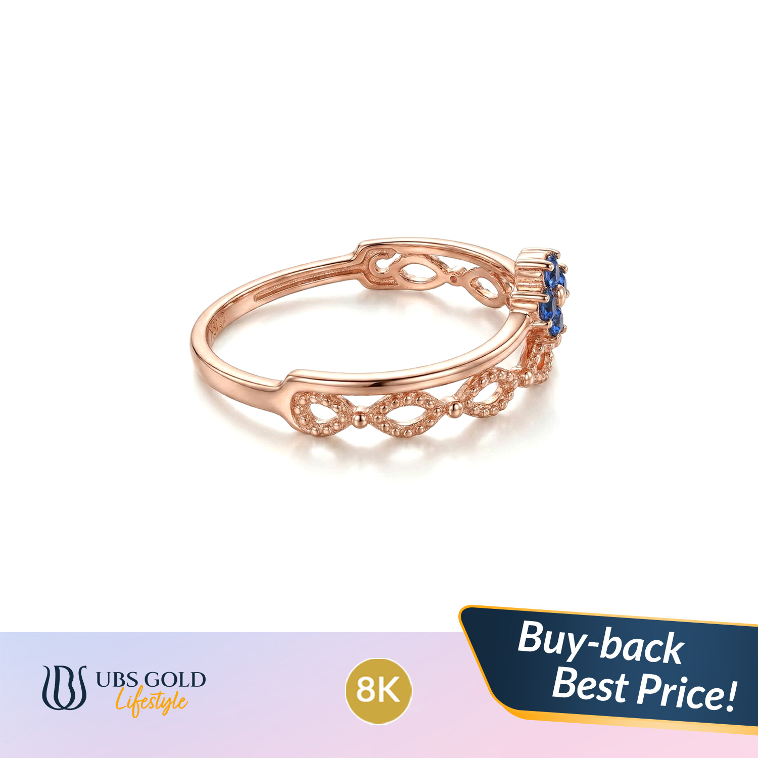 Cincin dengan desain bunga yang dipermanis dengan aksen batu berwarna biru untuk memberikan sentuhan warna yang menarik pada jari Anda.