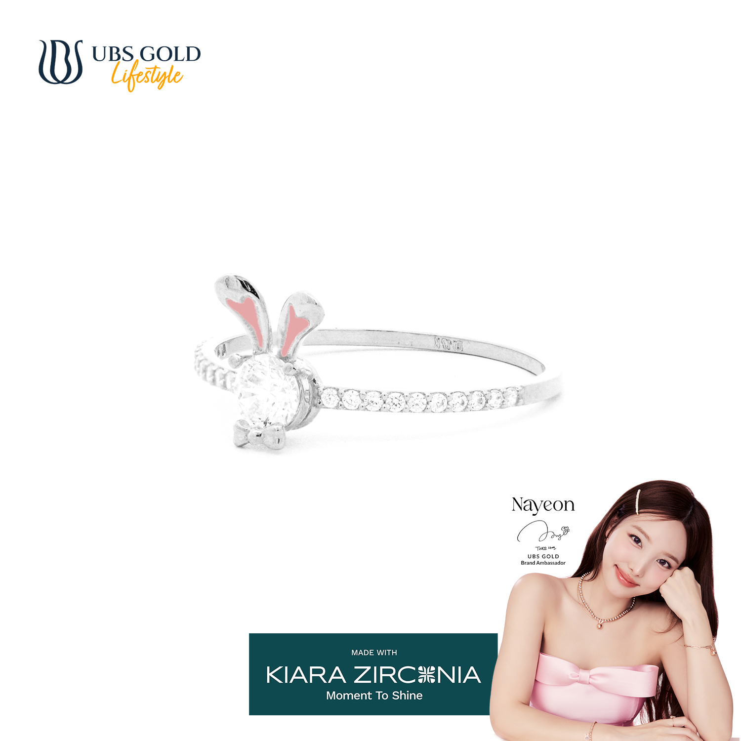 Dengan bangga, UBS Gold mempersembahkan perhiasan emas eksklusif kolaborasi dengan ikon K-Pop terkenal, Nayeon, yang dirancang untuk memberikan sentuhan elegan dan glamor pada penampilanmu.
