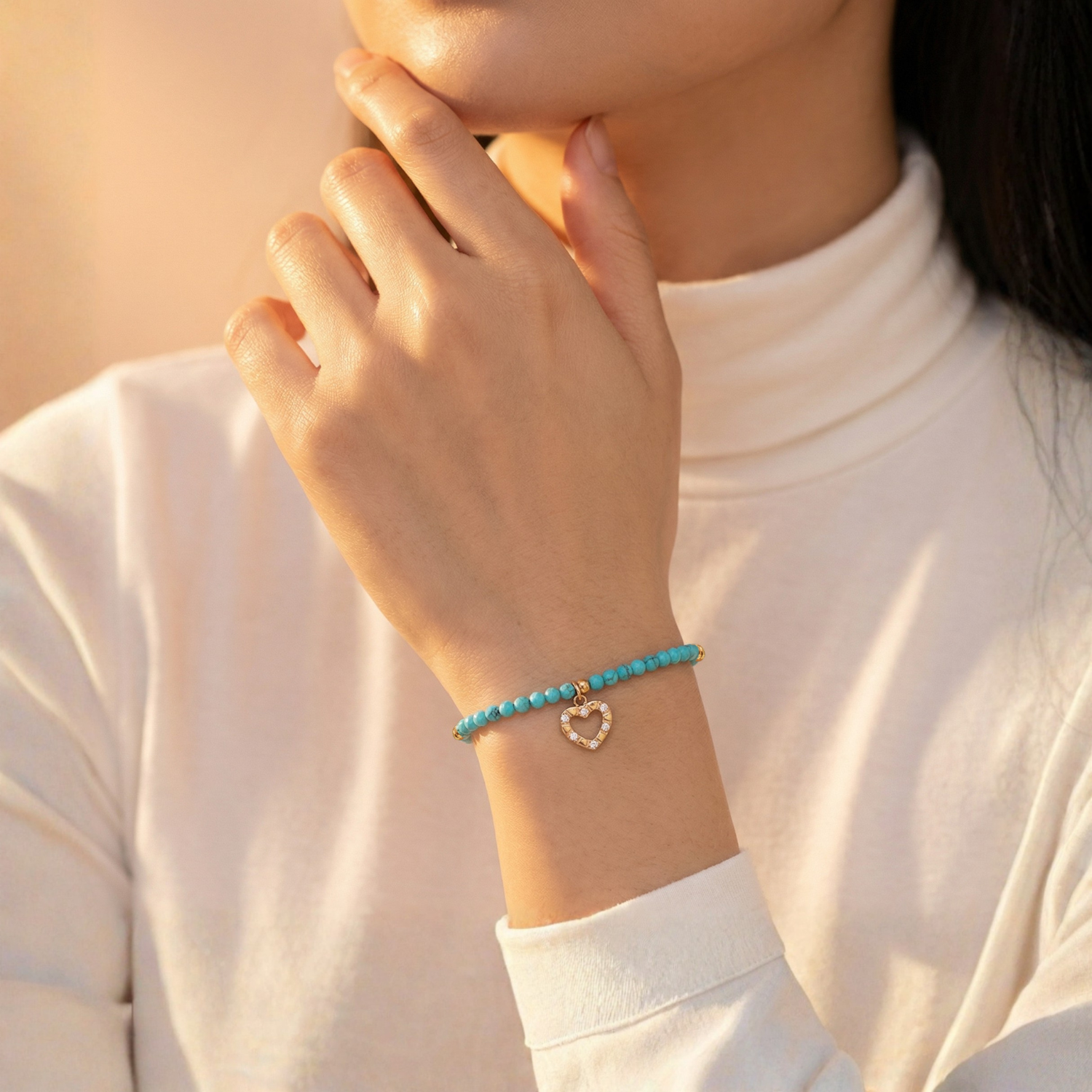 Kombinasi gelang beads dan emas. Bahan gelang terbuat dari beads dilengkapi dengan liontin emas asli sebagai ornamen yang membuat tampilan lebih stylist dan fashionable.