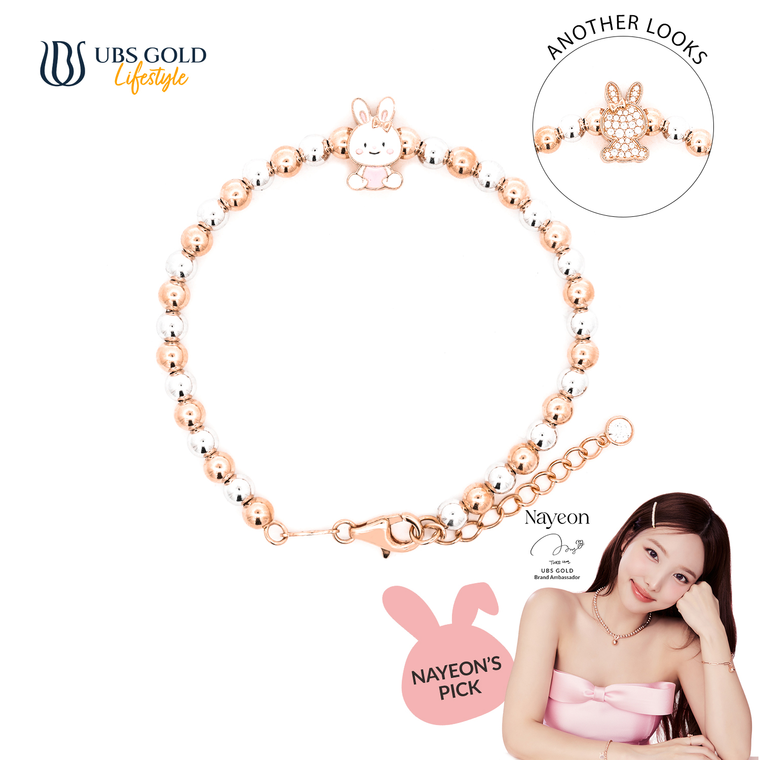 Dengan bangga, UBS Gold mempersembahkan perhiasan emas eksklusif kolaborasi dengan ikon K-Pop terkenal, Nayeon, yang dirancang untuk memberikan sentuhan elegan dan glamor pada penampilanmu.