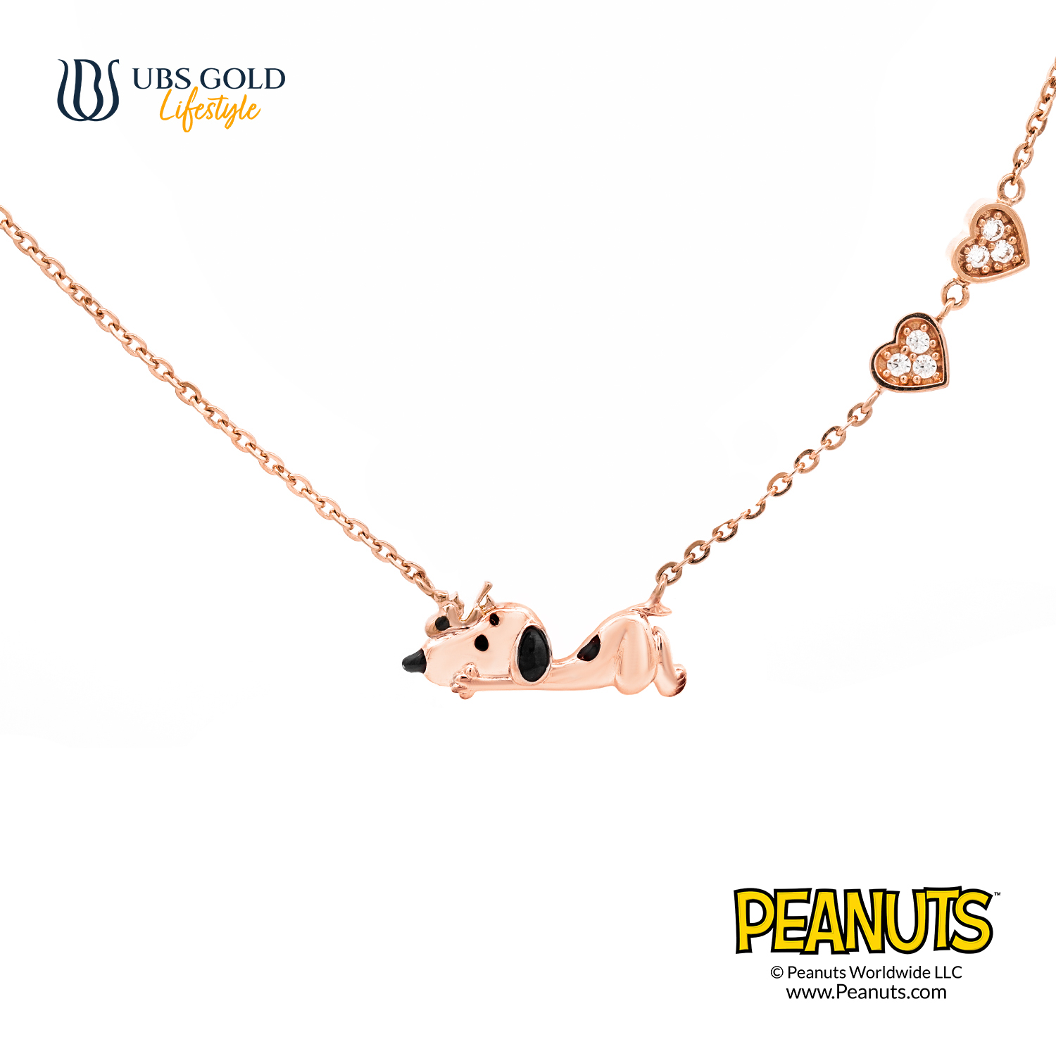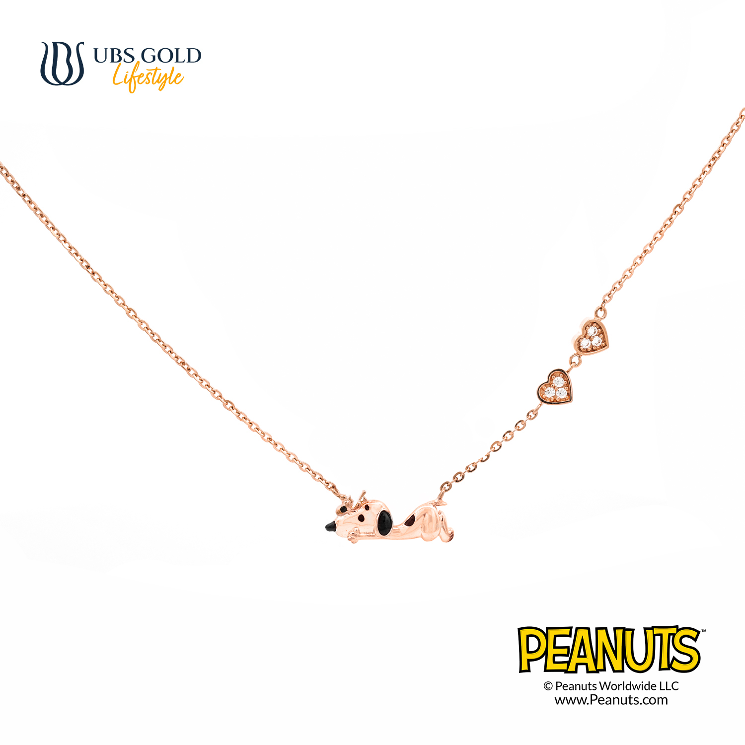 UBS Gold sebagai Lisensi Resmi Peanuts Emas Pertama di Indonesia mempersembahkan liontin emas Sweetie berbentuk karakter klasik seperti Snoopy, Charlie Brown, Woodstock, dan lainnya.