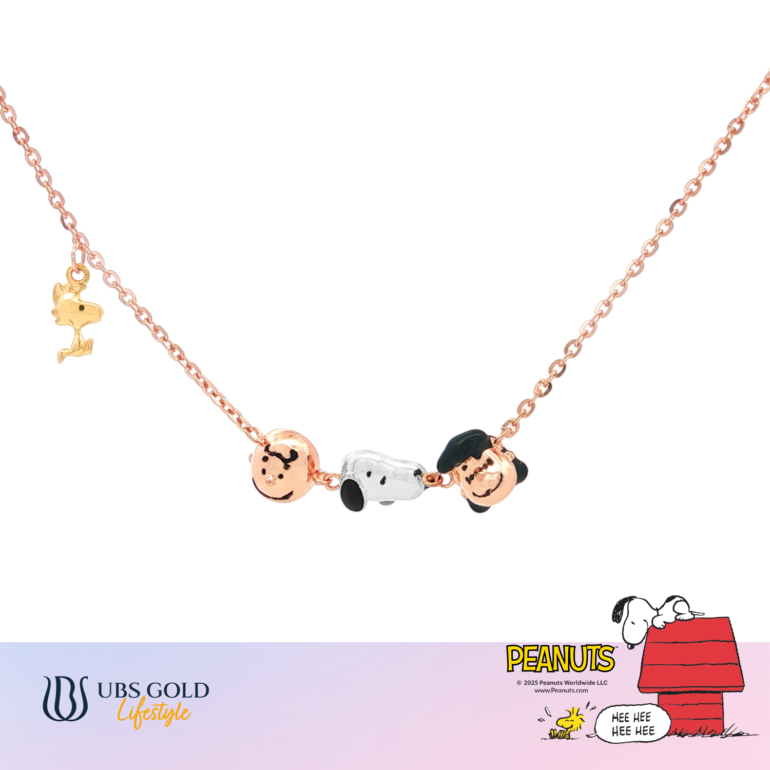Temukan koleksi kalung emas Peanuts pertama di Indonesia, hanya dari UBS Gold, pemegang lisensi resmi Peanuts!