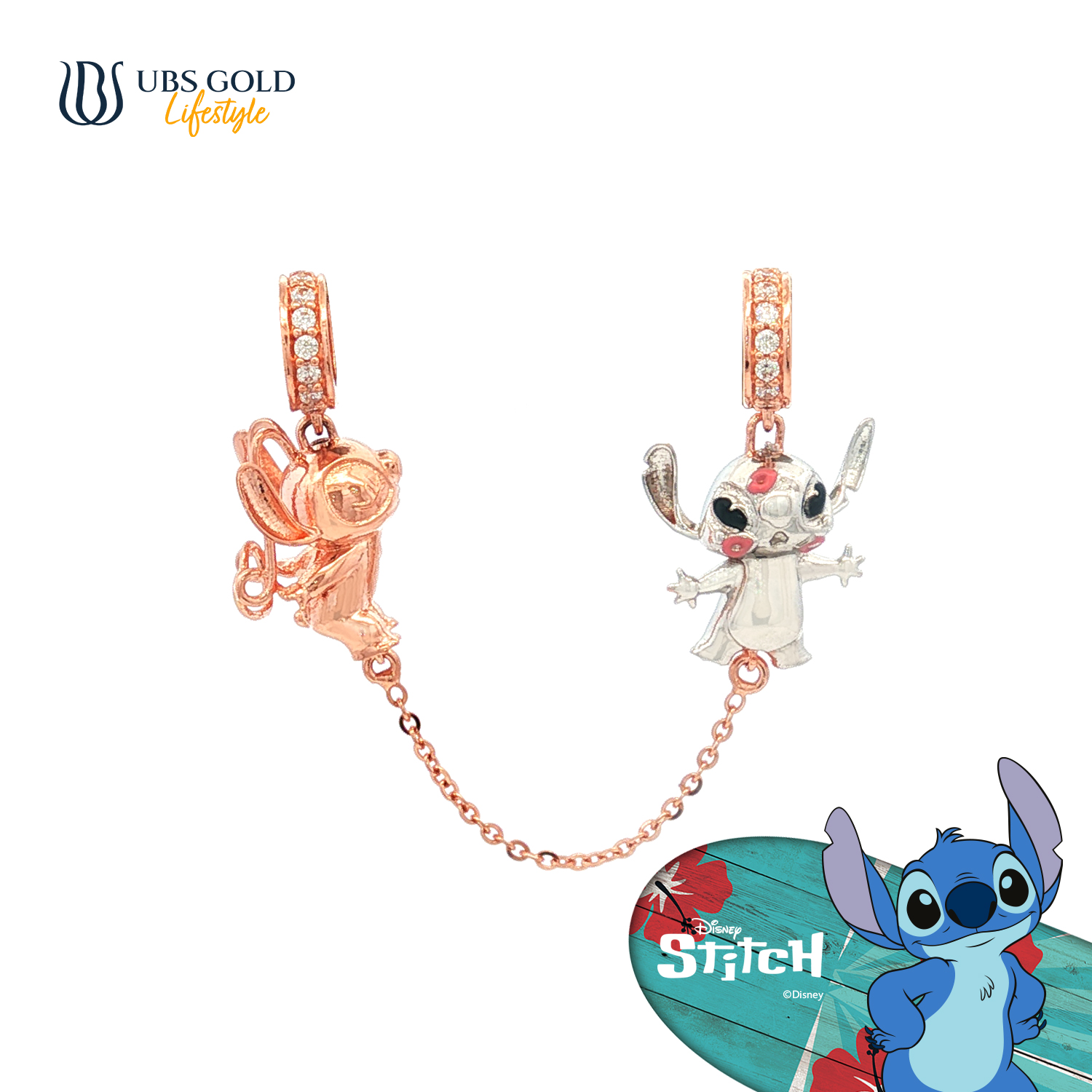 Koleksi ini menghadirkan karakter ikonik Stitch dan Angel dalam bentuk liontin emas yang lucu, unik, dan penuh makna. Dengan desain eksklusif dan sentuhan warna enamel yang ceria, setiap detail mencerminkan energi fun and playful.