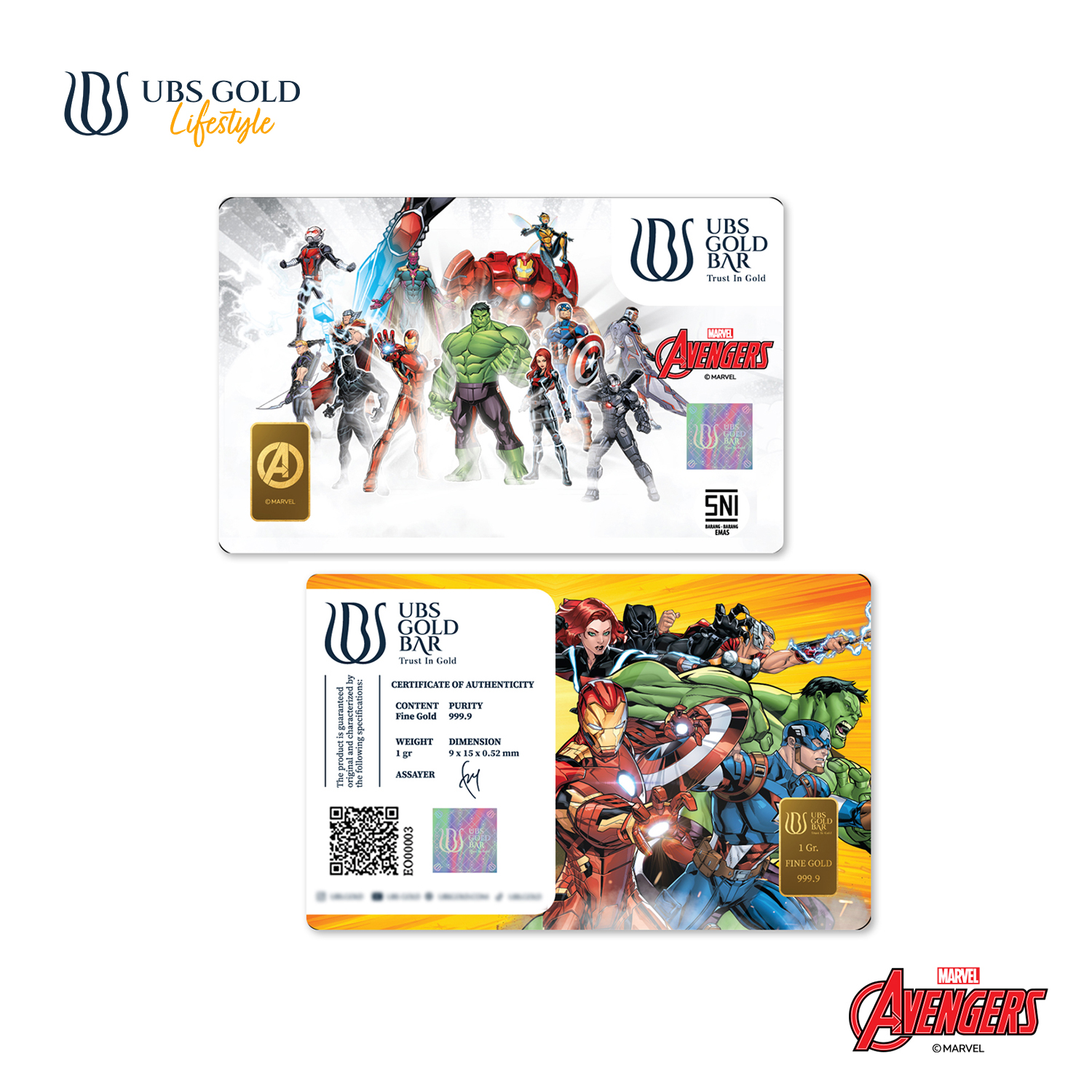 Waktunya kumpulkan para pahlawan favoritmu dalam bentuk emas! UBS Gold Bar Edisi Marvel Avengers adalah perpaduan sempurna antara investasi berharga dan koleksi keren. Setiap kepingan emas ini hadir dengan desain ikonik karakter Marvel seperti Iron Man, Captain America, Thor, dan lain-lain.