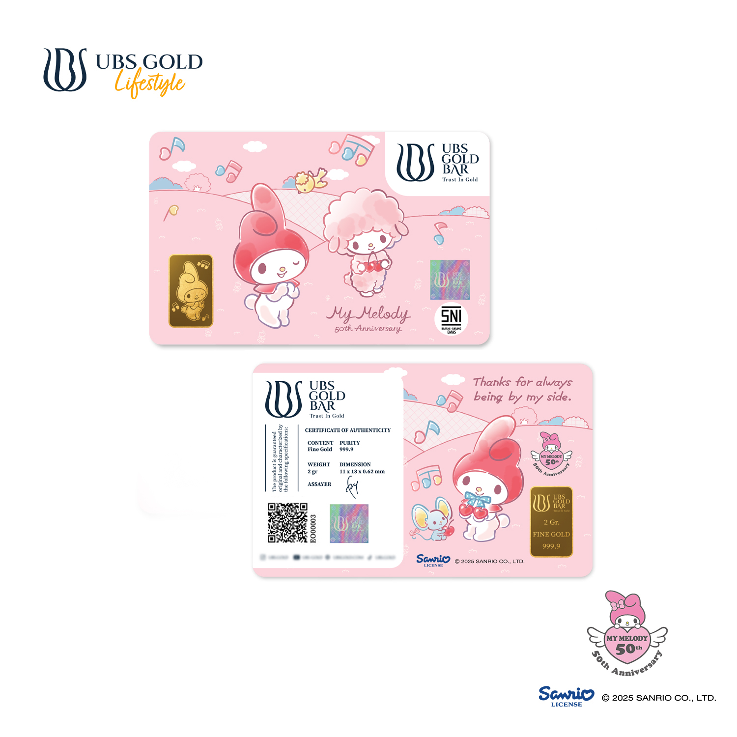UBS Gold, PT. Untung Bersama Sejahtera is the official license holder of Sanrio Gold Jewelry in Indonesia.. Sanrio & UBS Gold Jewelry menghadirkan koleksi logam mulia. Cocok untuk investasi dan hadiah orang special.