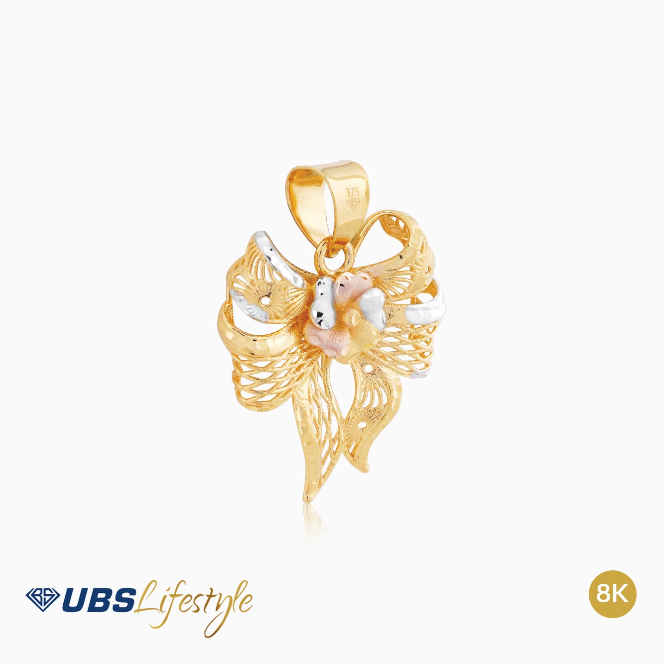 Perhiasan emas UBS yang memiliki stamp 375. Cocok untuk menyempurnakan penampilan Sahabat Emas.
