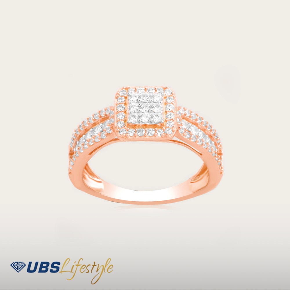Perhiasan cincin emas UBS yang memiliki stamp 750. Cocok untuk menyempurnakan penampilan Sahabat Emas.